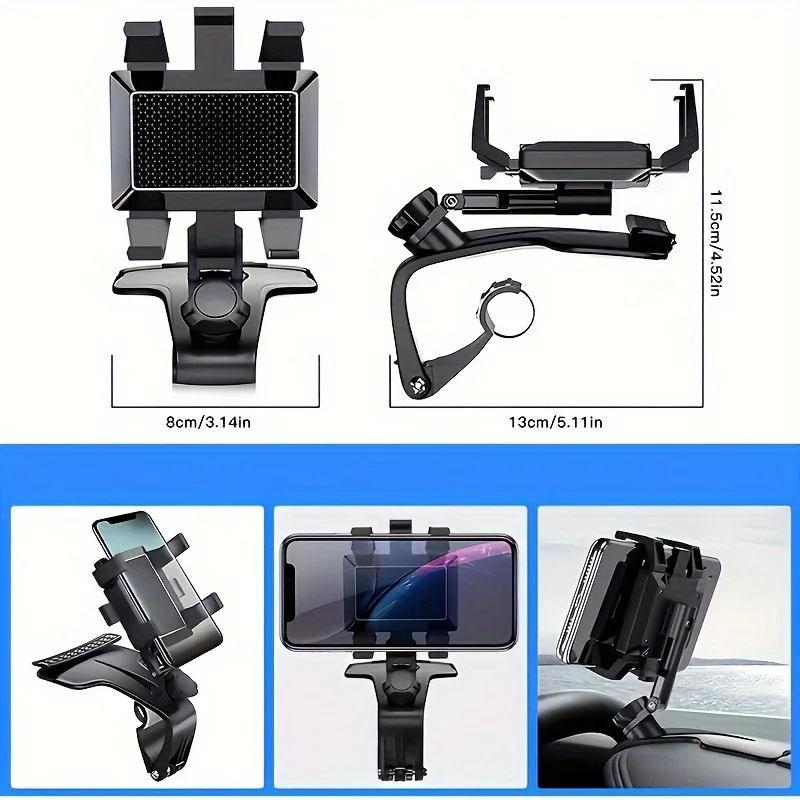 360° Rotatable Car Mobile Phone Holder - Dashboard Navigation Mount with Parking Number Plate