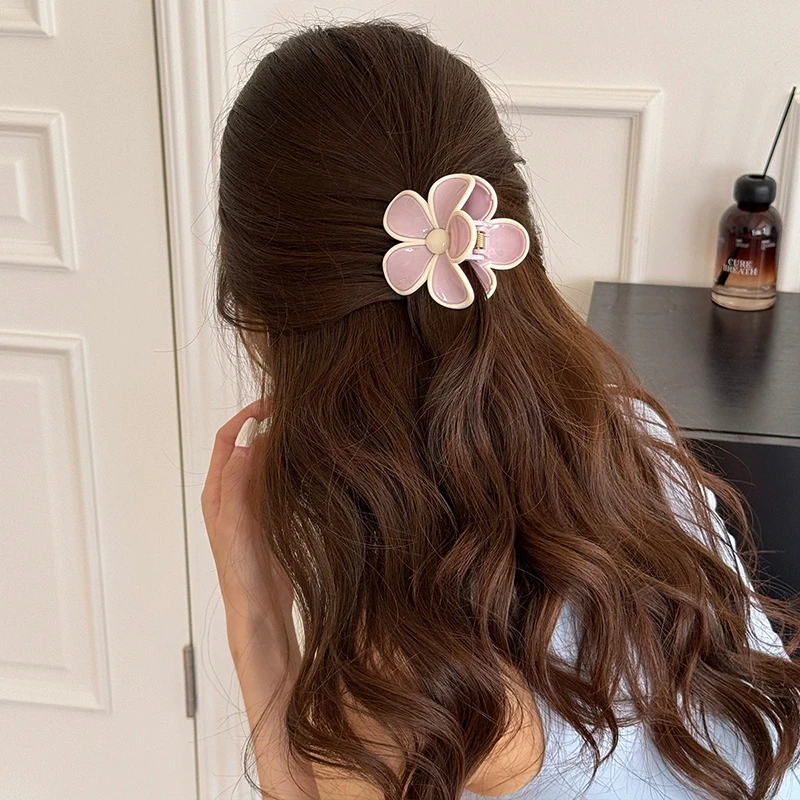 Cream Mousse Flower Medium Grab Clip Atmosphere Shark Back Head Plate Hairpin Half Tie Hair Summer New Claw Leading Fashion Kpop