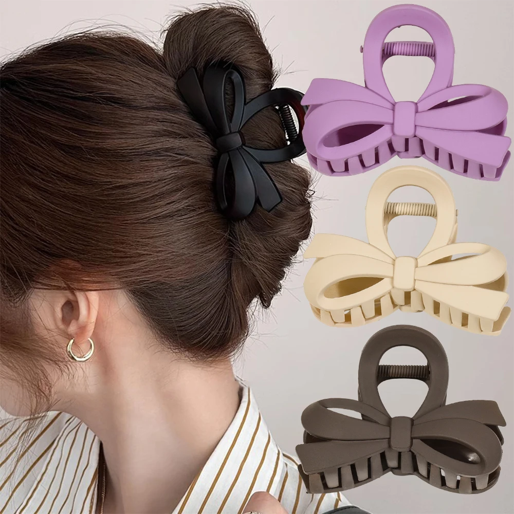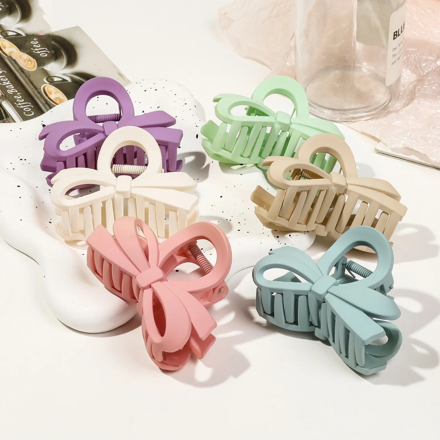 Matte Bow Large Hair Claw Crab Korea Women Solid Acrylic Hair Clips Hairpins Girls Ponytail Hair Accessories Barrettes Headbands