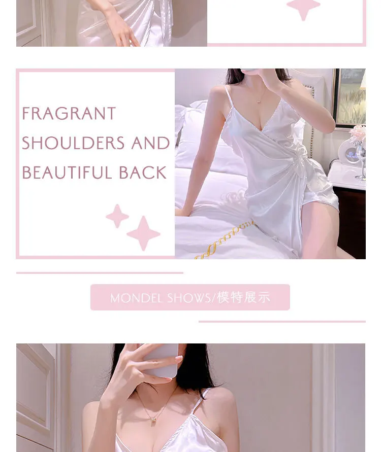 White Bow Mini Tank Dress Sweet Fashion Korean Women V Neck New Lingerie Uniform Ice Silk Robe Dress Elegant